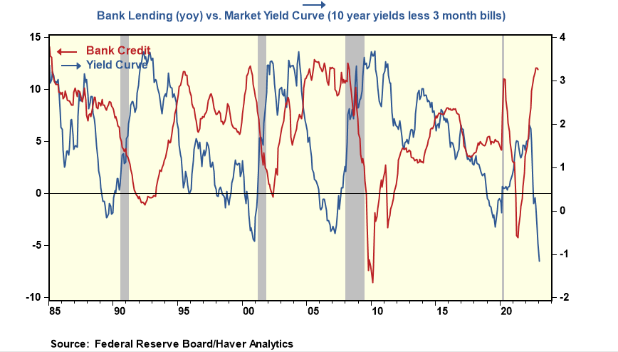 Bank lending is the principal channel to capture the effects of a tighter monetary policy. Yet, bank lending to businesses, real estate, and consumers accelerated throughout 2022, the fastest annual growth since 2006, even as the Federal Reserve raised official rates by 425/450 basis points. How can bank lending stay so strong against a backdrop of higher official rates, interest rates that the financial markets think are prohibitive, as the market yield curve (or the spread between 10-year Treasuries and the three--month Treasury bill) is the most negative in decades. The answer is quantitative easing.